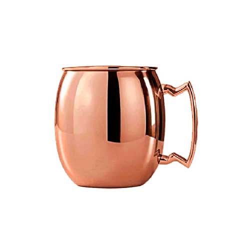 Mug de acero inoxidable electro plateado en cobre y asa de Zamak. Cobre en interior, color acero inoxidable en interior. Presentación en plástico burbuja dentro de caja kraft.